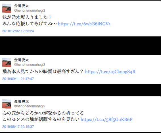 この金川亮太と名乗るツイッターアカウントは現在削除されているため見ることはできません。