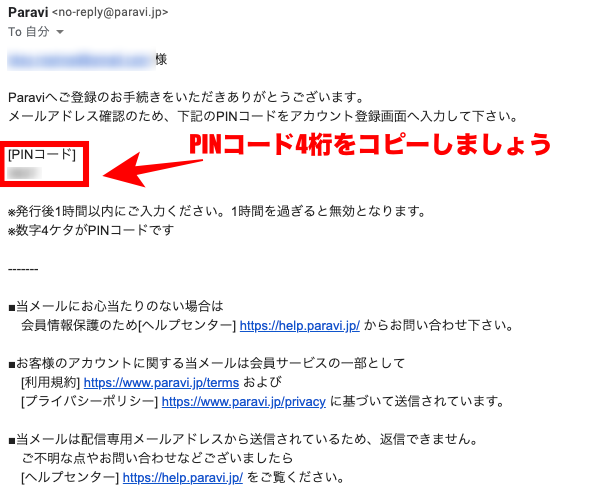 そこに記載されているPINコード4桁をコピーして、先ほどの画面にペースとします。