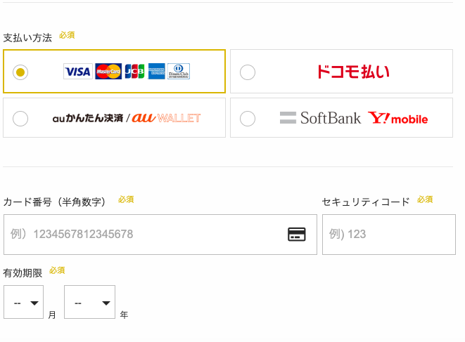 最後にお支払い方法を決定します。