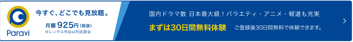 私がオススメしているParaviでは登録から1ヶ月無料トライアルを行なっているので是非その期間を利用して視聴してみてください。
