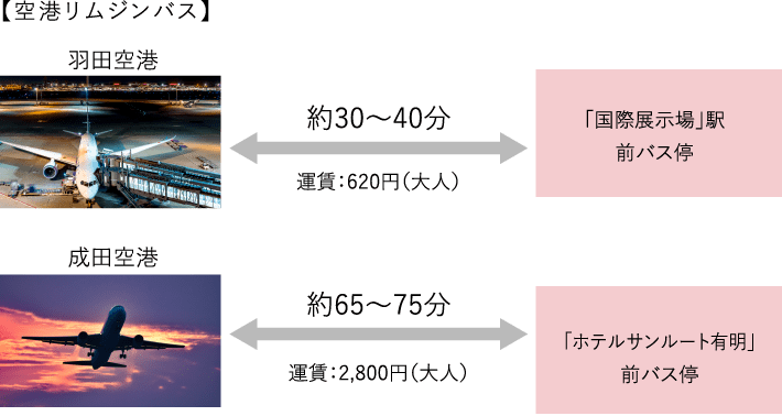また、バスや空港からのアクセスも紹介します。