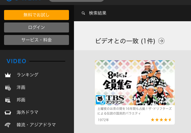 「鉄道員」「8時ダョ!全員集合」はU-NEXT、