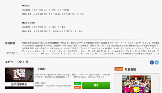 今回はOne World:Together at Homeの見逃し動画を視聴方法についてまとめてみました。