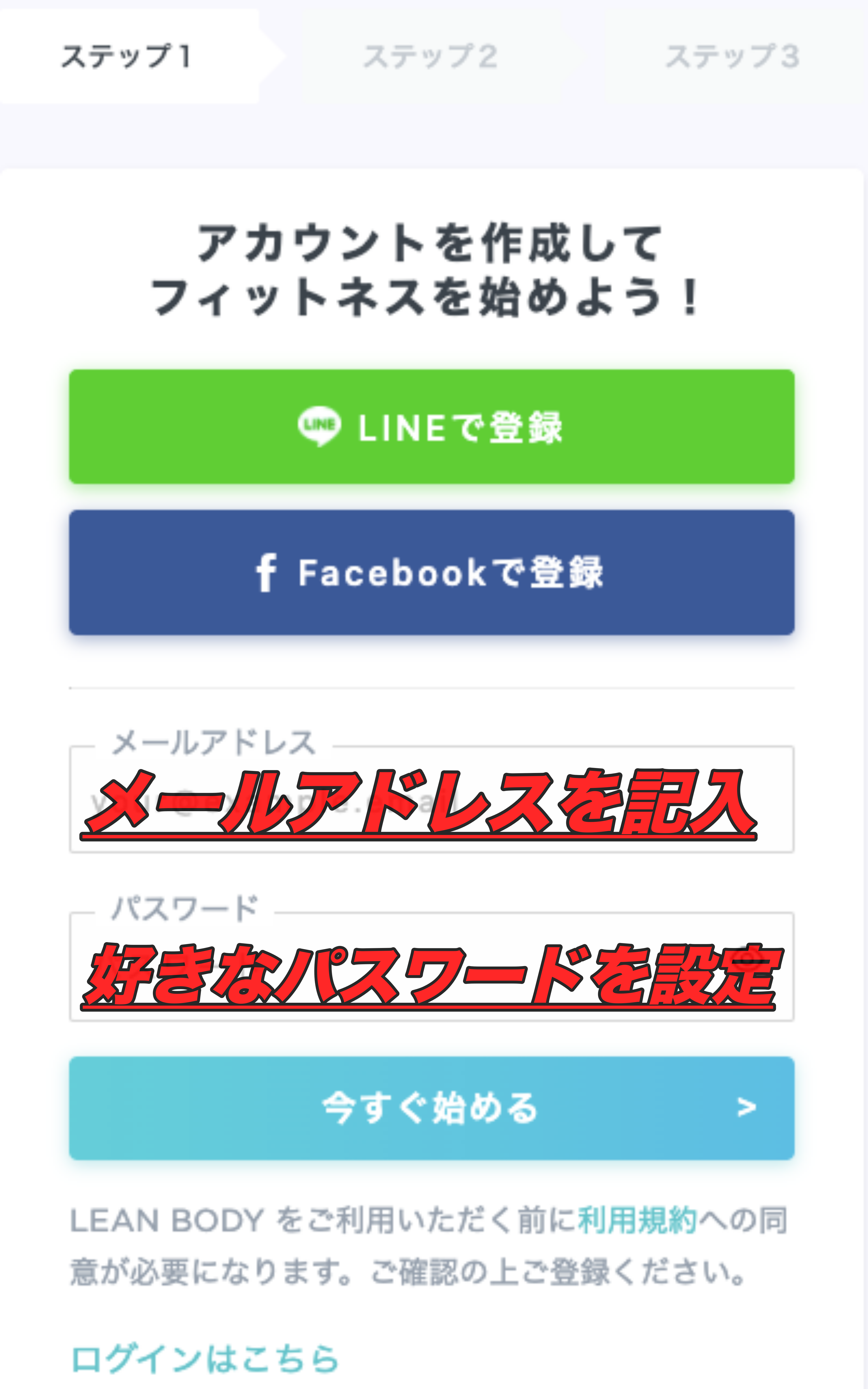LEANBODYの登録する手順