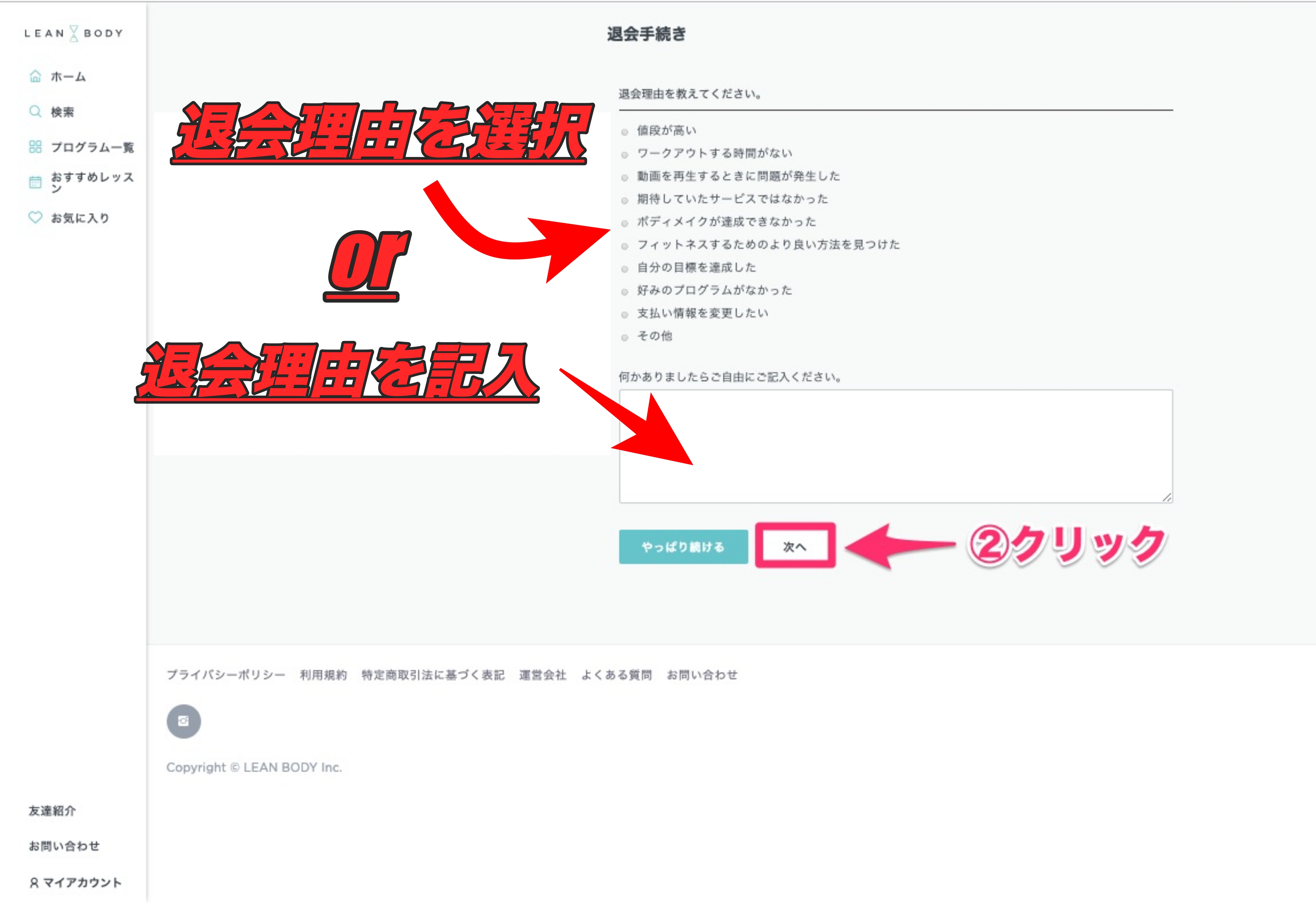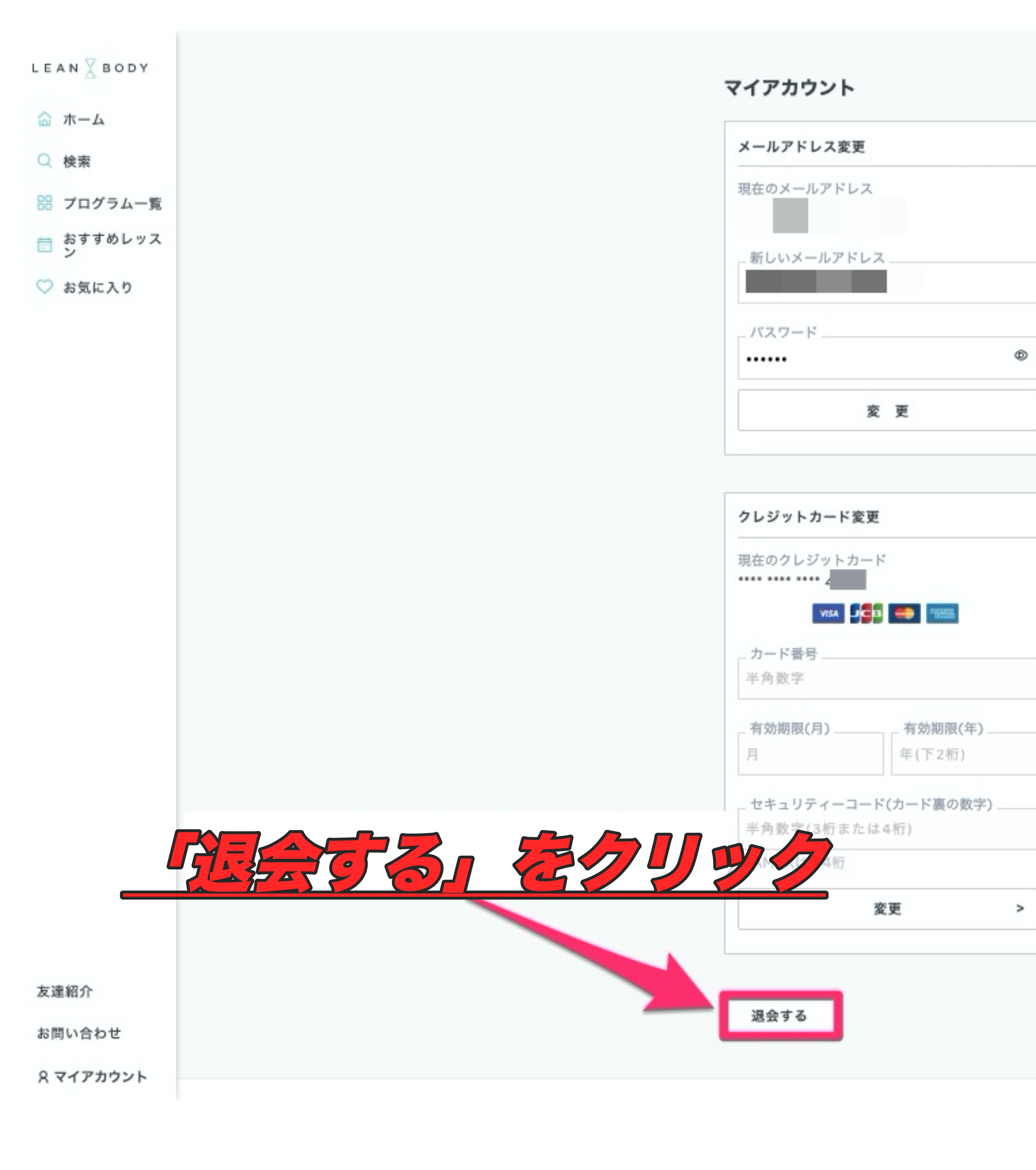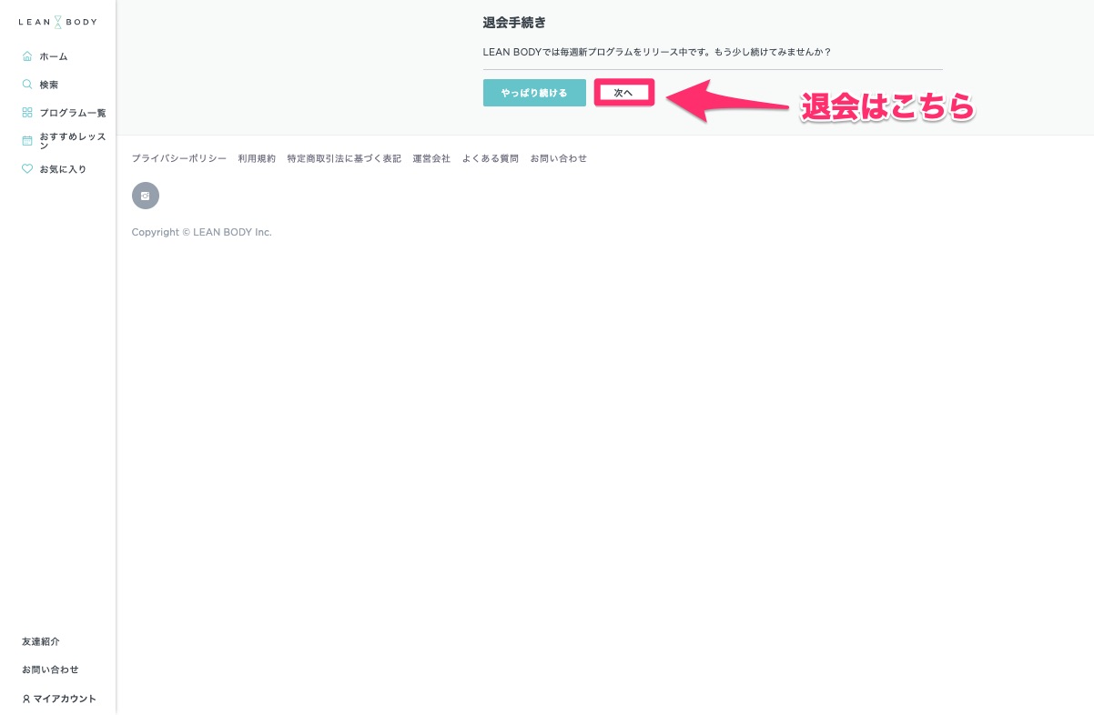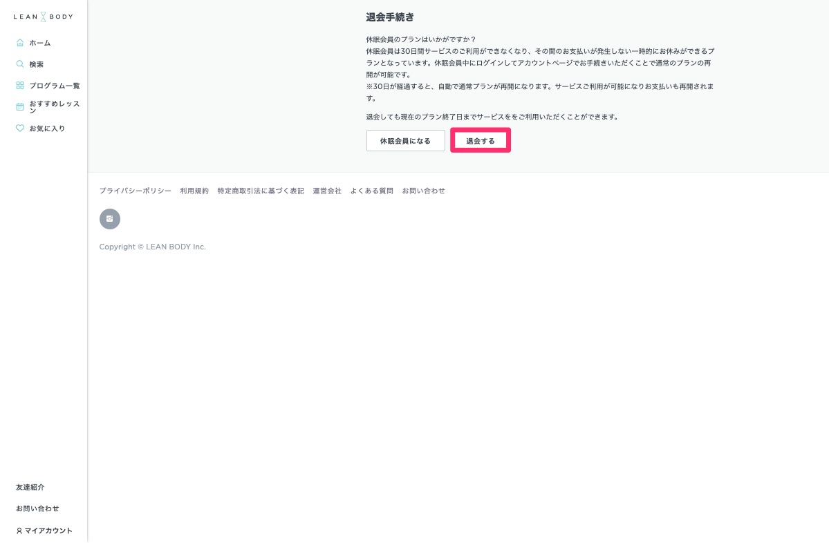 LEANBODYの解約(退会)する手順
