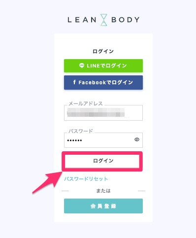 - LEANBODYのログインページにアクセス