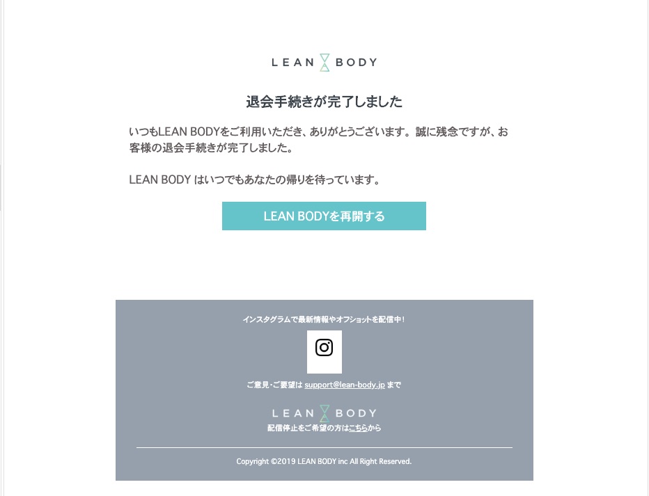 退会手続きを終えるとメールが届きます。