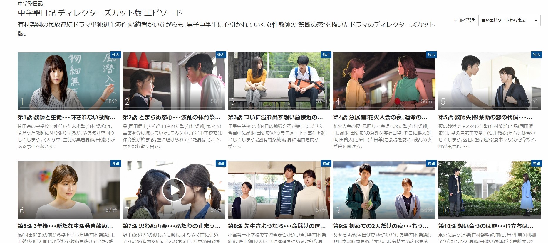 例えば、中学聖日記だけでなく、以下のドラマも視聴できます。