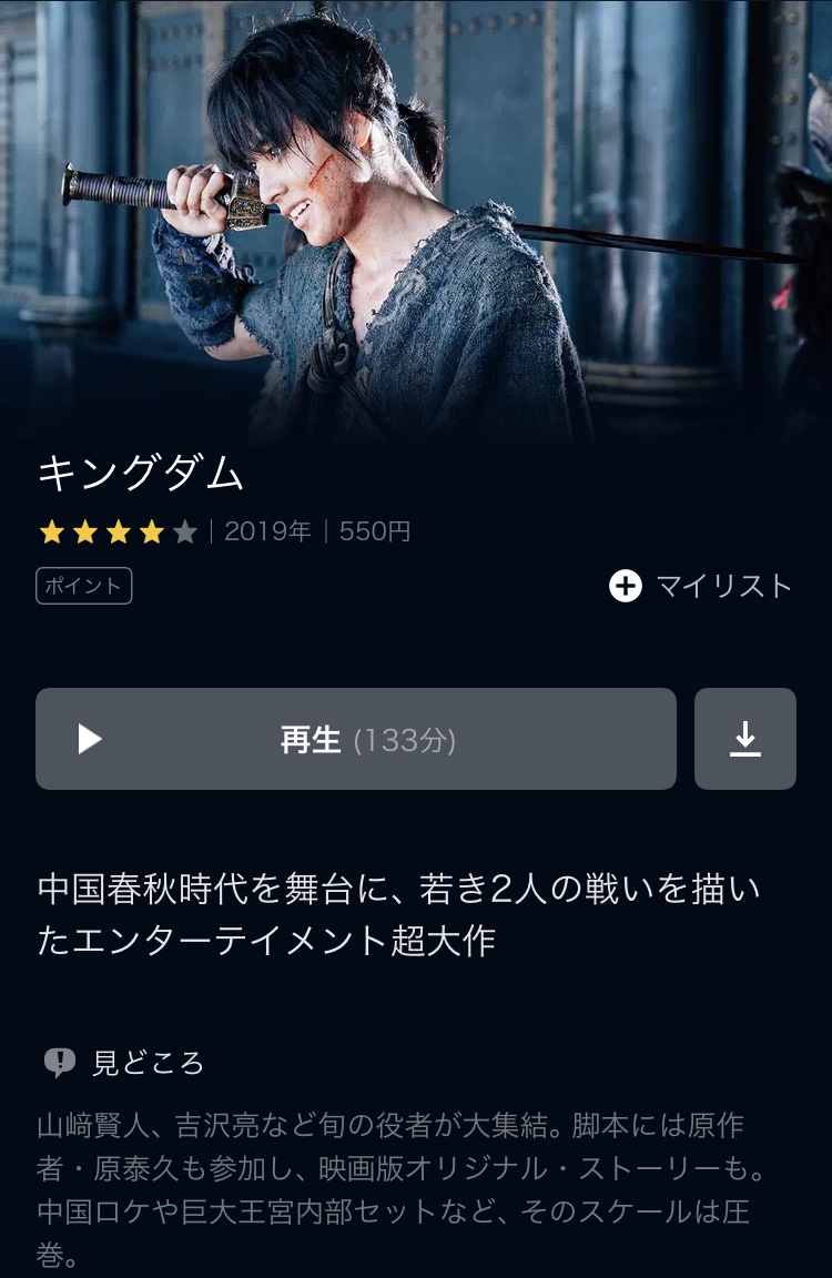 またU-NEXTだと、ドラマだけでなく、マンガ・アニメのキングダムも視聴できますので是非ご利用してみて欲しいです。